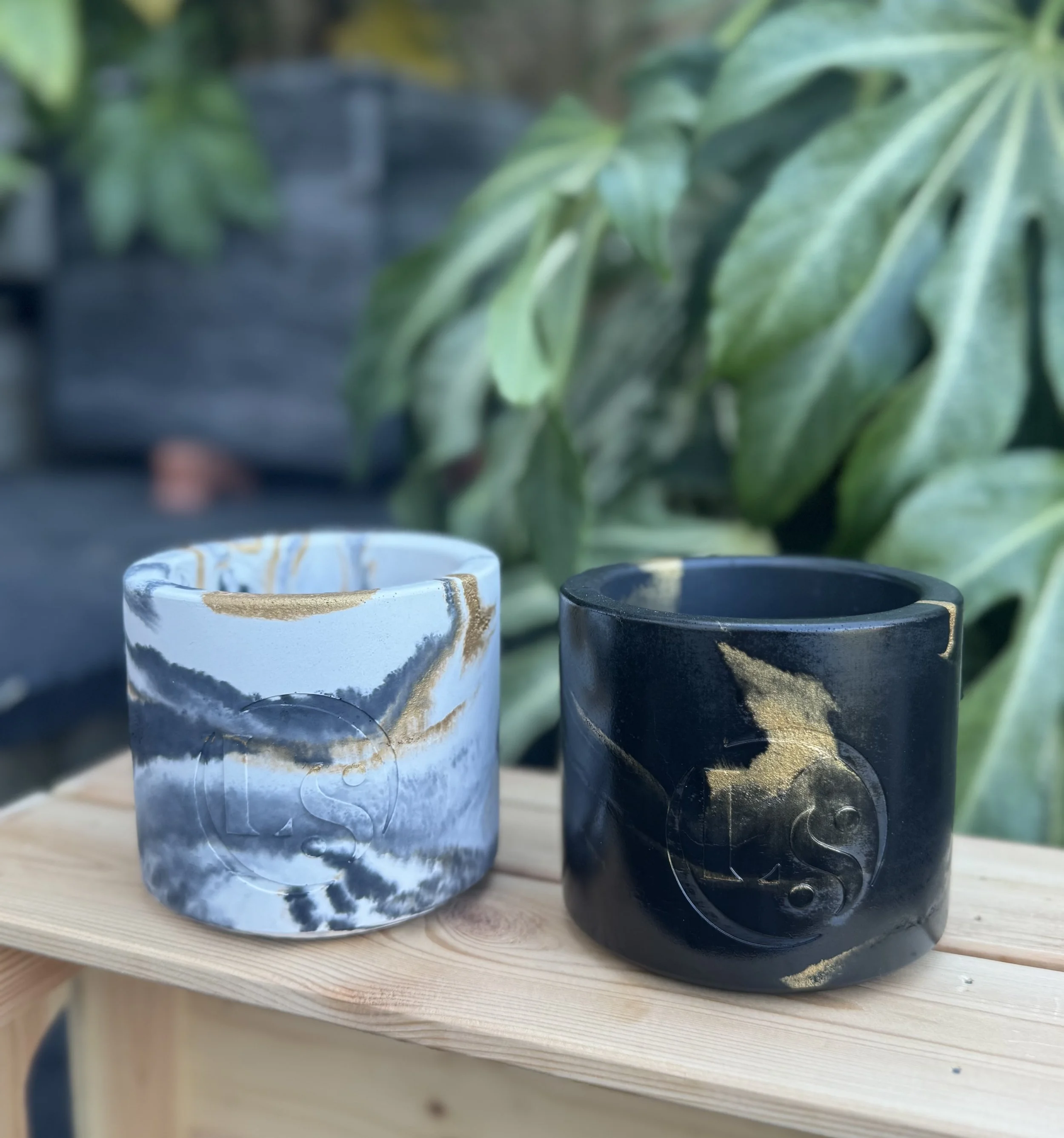 Our Luxury scented soy wax candle is housed in a uniquely beautiful handmade Jesmonite vessel featuring different effects from the pigments we use. We combine beautiful aesthetics with eco friendly materials to give your space the Glow it deserves, lit or unlit this candle will elevate your senses.